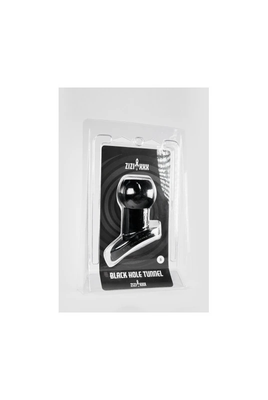 Plug anal noir en TPR, taille small, transpercé par un tunnel sur toute sa longueur.
