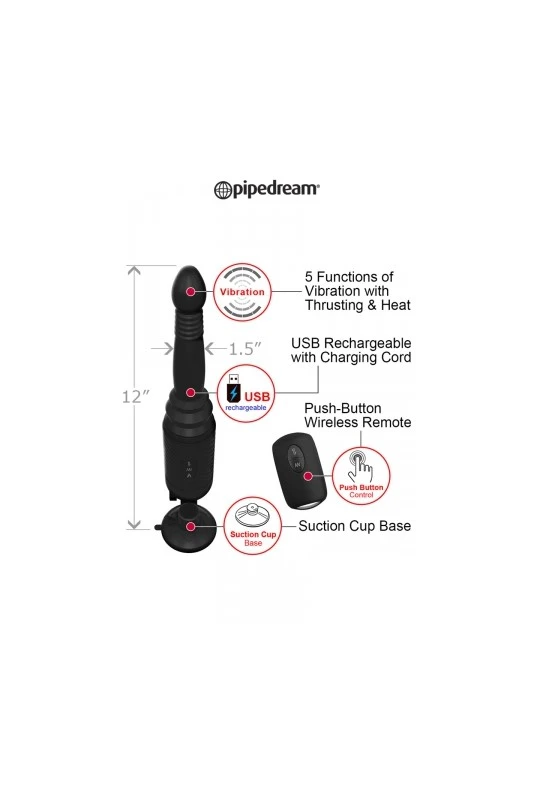 Plug anal vibrant télécommandé, avec ventouse amovible, fonction va-et-vient, chauffant et 5 modes de vibrations.