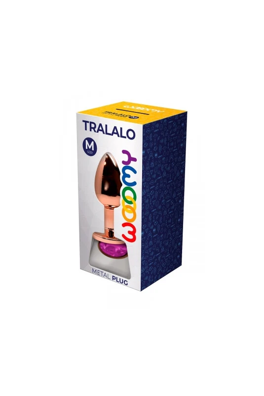 Plug anal en métal couleur rose gold d’une longueur de 8 cm et d’un diamètre de 3,4 cm, décoré d’un bijou rose à sa base.