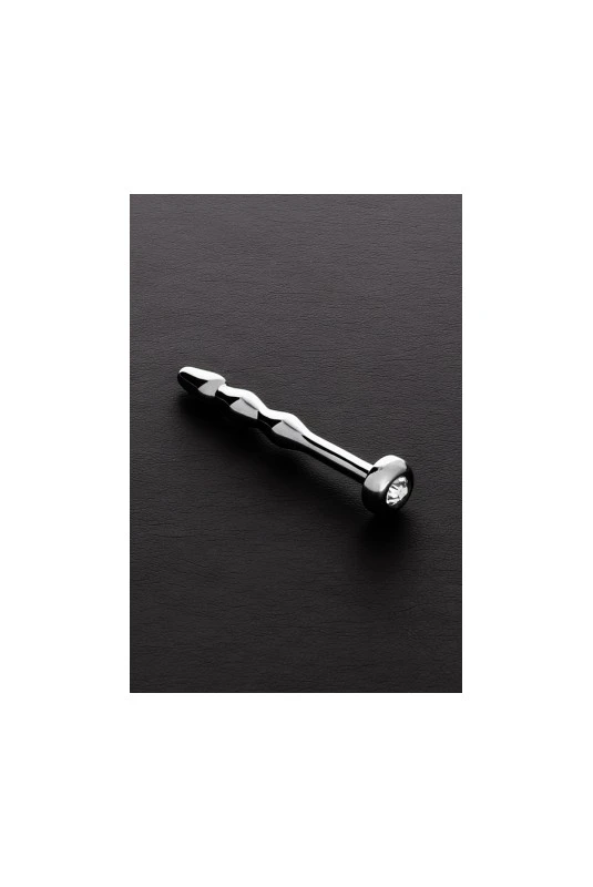 Tige urĂ©trale en acier inoxydable poli, surmontĂ©e d’un strass effet cristal. longueur totale 75 mm.
