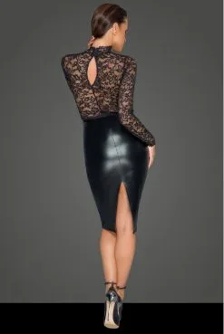 Robe moulante longue aux genoux à la belle coupe cintrée, en wetlook mat et dentelle.