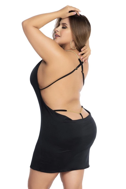 Robe Grande Taille Sexy Chic Drapée Noire Bretelles en Chaînette