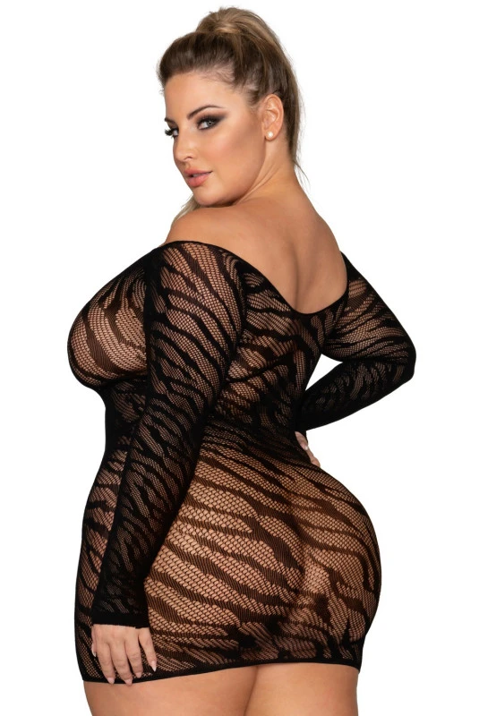 Robe Lingerie Grande Taille Zébrée Noire