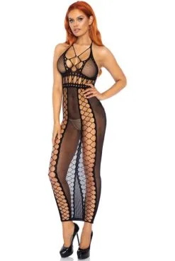 Robe Lingerie Longue Résille Dos Nu Effet Lacets