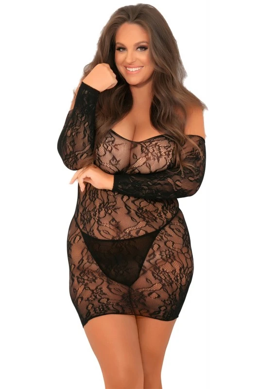 Robe Lingerie Noire Grande Taille Fine Résille Épaules Nues