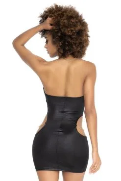 Robe Sexy Echancrée Noire à Chainette et Tour de Cou Marina