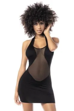 Robe Sexy Noire Opaque et Fine Résille Transparente Dos Nu