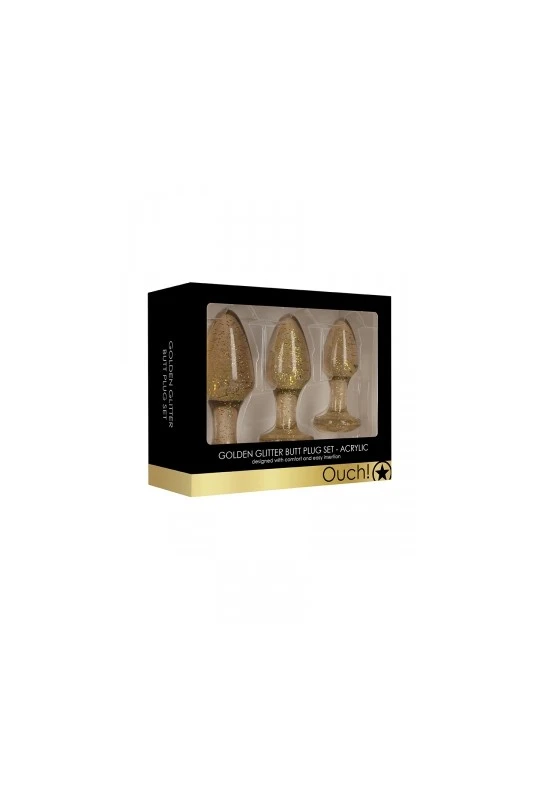 Set 3 Plugs Anal Pailletés Dorés Acrylique Ouch!