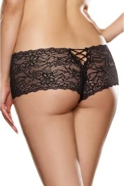 Shorty Dentelle Ouvert Noir Laçage Dos Grande Taille
