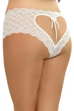 Shorty Grande Taille Dentelle Blanche Ouvert Fesses Coeur
