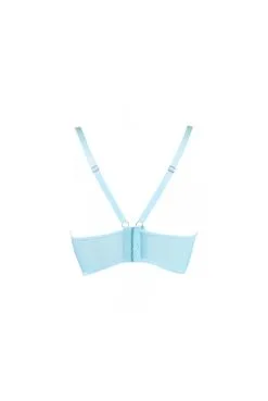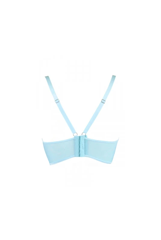 Soutien-gorge bustier raffiné en fine dentelle bleue avec armatures, pour un maintien en beauté de la poitrine.