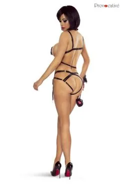Ensemble Ouvert Fetish Soutien Gorge Et Culotte Harnais Noir
