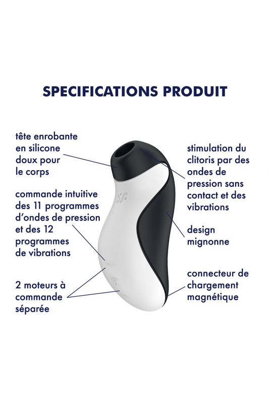 Puissant stimulateur féminin par ondes de pression et vibrations, rechargeable, doté de 2 moteurs indépendants.