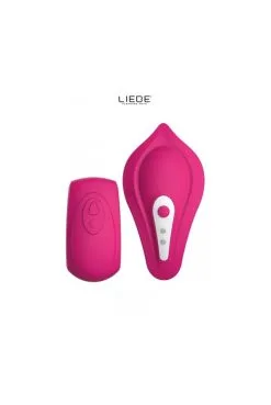 Luxueux mini stimulateur télécommandé chauffant avec sa culotte spéciale fournie pour un confort maxi, couleur cerise.