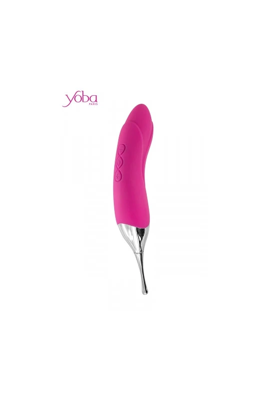 Sextoy rechargeable 2 en 1 avec un cĂ´tĂ© vibromasseur et l’autre cĂ´tĂ© stimulateur clitoridien ultra prĂ©cis.