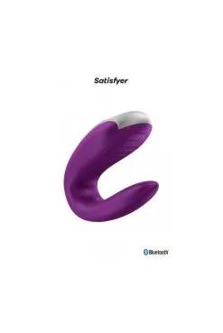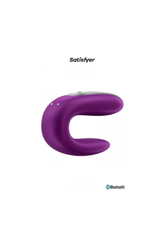Double vibro pour couples, en silicone, fonctionnant avec télécommande sans fil ou commande par smartphone. Coloris violet.