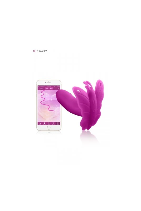 Stimulateur féminin connecté en forme de papillon pour stimuler clitoris et vagin à distance en toute discrétion, par Realove.
