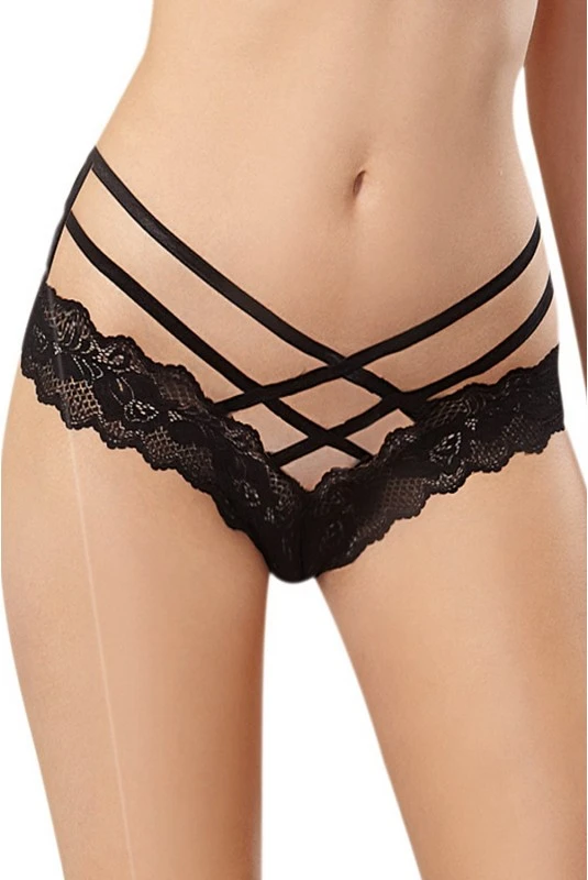 Tanga Noir Brésilien Strappy Croisés