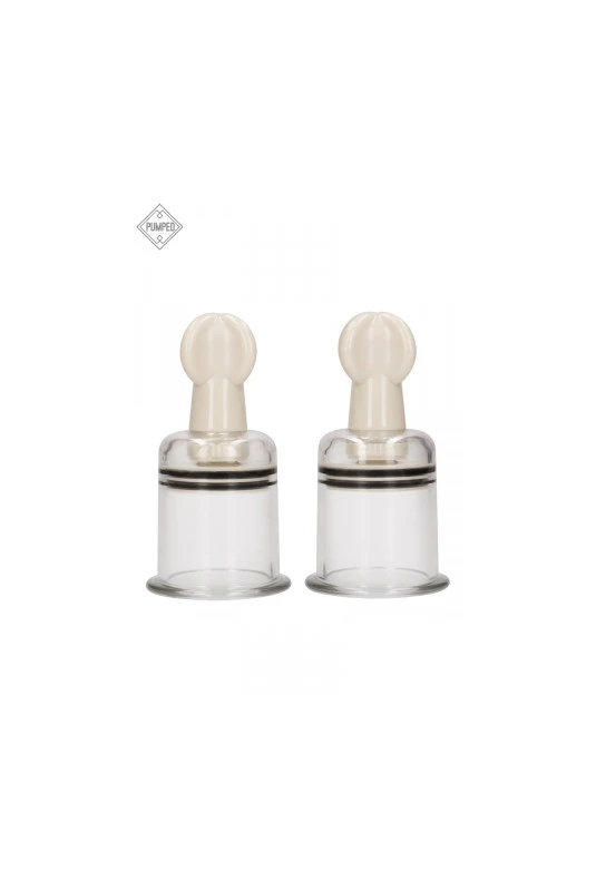 Paire de ventouses manuelles à tétons pour développer les mamelons et accroitre les sensations, par Pumped. Taille Large.