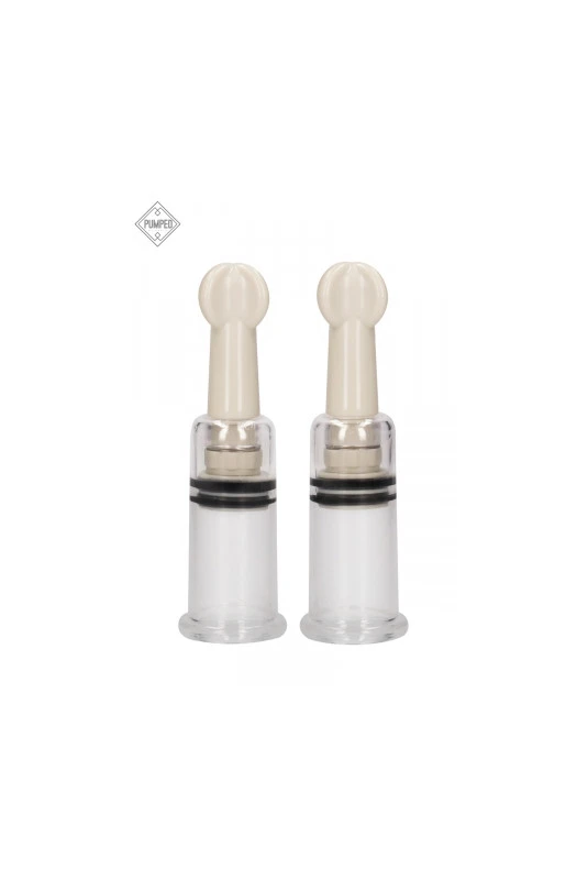 Paire de ventouses manuelles à tétons pour développer les mamelons et accroitre les sensations, par Pumped. Petite taille.