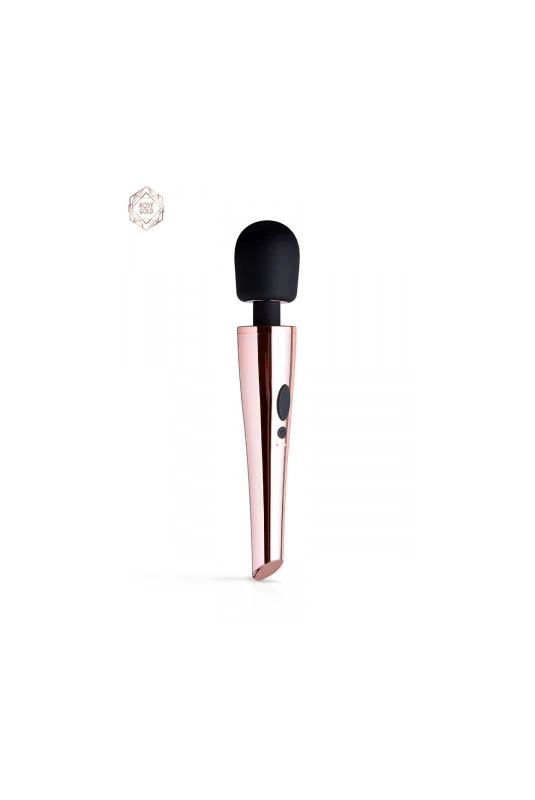 Puissant vibro baguette rechargeable (30 cm de long), couleur rose gold, idéal pour la stimulation externe.